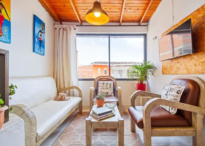 Una cucina completamente attrezzata dell'alloggio dispone di un frigo, un forno e utensili da cucina. L'aeroporto di Medellin Enrique Olaya Herrera, essendo il più vicino, dista 10 km da quest'appartamento di 90 m^2. Inoltre, la stazione degli autobus Cordoba si trova a circa 700 metri.